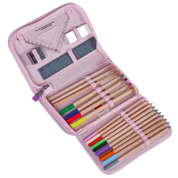 LEGO penál s náplní obsahuje všechny potřebné psací potřeby do školy. Penál je dodáván s náplní: 2 grafitové tužky, 10 barevných pastelek, 4 široké barevné pastelky, guma na gumování, ořezávátko, rovné a trojúhelníkové pravítko. Penál obsahuje rozvrh hodin v průhledné kapse a všitou vnitřní jmenovku. Je vyroben z odolného materiálu bez použití PVC. K dostání v mnoha oblíbených LEGO motivech. Ideální pro první ročník základní školy.