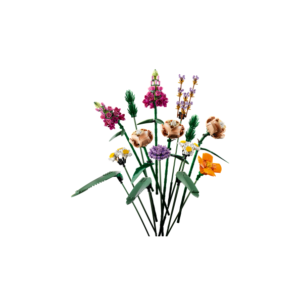 Stavebnice LEGO® kytičky (10280) je jedinečným dárkem a poutavým projektem. Výsledkem je krásná výstavní kytice vyrobena celá z LEGO dílků. Upozorňujeme, že váza není součástí balení.