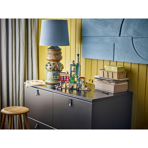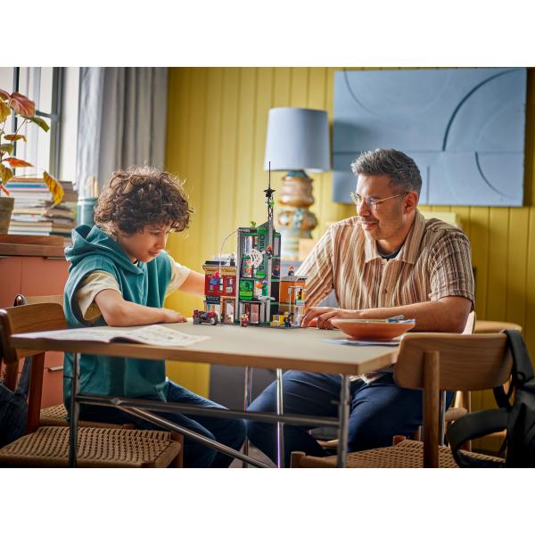 Pouliční scéna obsahuje 3 osobité budovy: byt Milese Moralese s klenotnictvím v přízemí, kancelářskou budovu Oscorp a Venomův byt s večerkou pod ním. Každá místnost je zařízena nábytkem a doplňky. 8 minifigurek LEGO z filmů Marvel se postará o nekončící akci a vrhání pavučiny: Spider-Man, Spider-Woman, Miles Morales na motorce, Eddie Brock, Ghost-Spider, Norman Osborn, Lovec Kraven a Zelený Goblin s kluzákem. Díky průhledným tyčkám mohou děti nasměrovat postavy do různých realistických póz. Stavte společně v aplikaci LEGO Builder, kde si přátelé a rodina užijí společnou tvůrčí zábavu. Model obsahuje 808 dílků.