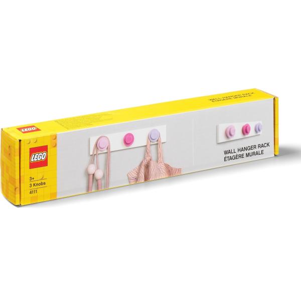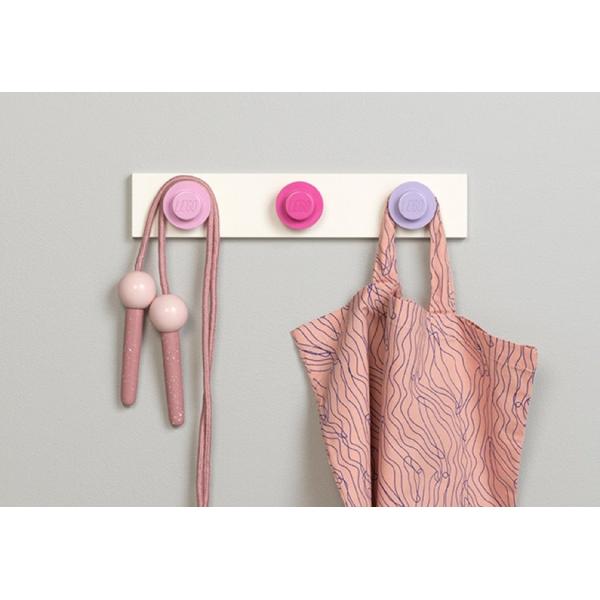 LEGO® nástěnný věšák – světle růžová, tmavě růžová, fialová