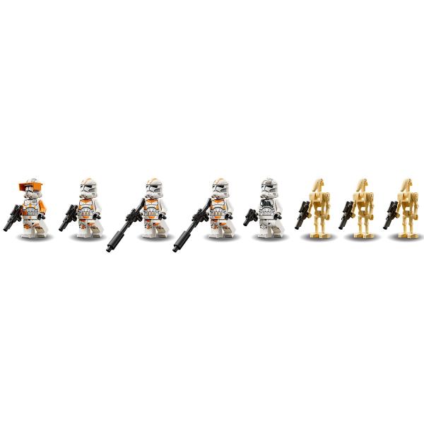 5 minifigurek LEGO® a 3 figurky LEGO droidů – Velitel Cody, klonovaný střelec z 212. divize, 3 klonovaní vojáci z 212. divize, 3 bojoví drojdi (všichni mají i zbraně) ak tomu trpasličí pavoučí