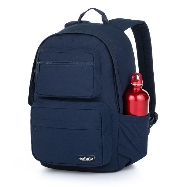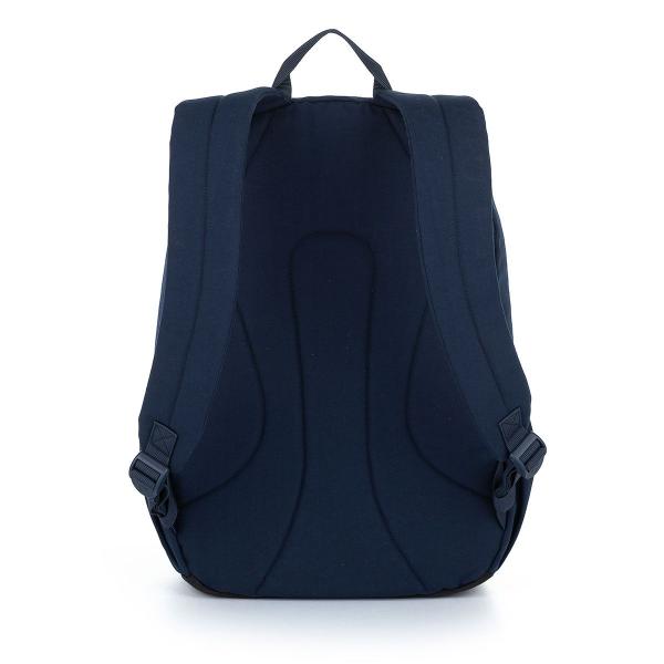 Lehký batoh na školní i pracovní potřeby se spoustou kapes, polstrovanými popruhy a hrudní přezkou. Hlavní charakteristika: tkaný pevný materiál pruhovaná vnitřní podšívka 15″ palcová polstrovaná kapsa s fleesovou podšívkou dvě přední a jedna vnitřní kapsa na zip pevné nepropustné dno ucho pro přenášení v ruce a kovové tahačky Rozměry: 45 x 30 x 18 cm Materiál: 100% Polyester Hmotnost: 0,62 kg Věk: 6+