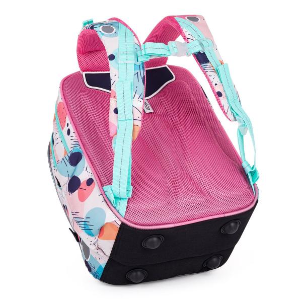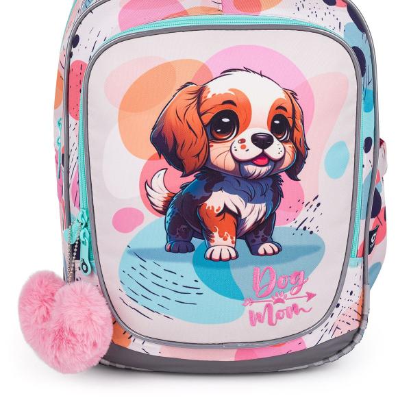 Batoh má dvě objemné hlavní komory. Do nejširší zadní komory doporučujeme dát nejtěžší učebnice nebo desky na sešity. Přední komora je o něco užší a je v ní umístěno malé síťové kapsička na zip a jmenovka.