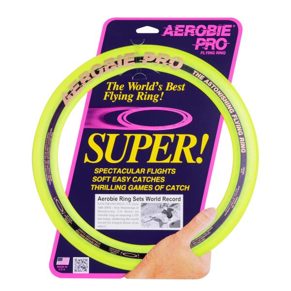 Létající kruh Aerobie PRO má naprosto výjimečné letové vlastnosti. S létajícím kruhem Aerobie Pro byl vytvořen světový rekord v hodu do dálky, který je zapsán v Guinnessově knize rekordů a to neuvěřitelných 406 m! Se spoluhráčem si tak můžete bez problémů házet na vzdálenost i 100m. Díky jedinečné konstrukci je kruh za letu rovnoměrně nadnášen vztlakovou silou – jako by při letu klouzal po neviditelné vrstvě ledu. Tento efekt přímého letu funguje i při různých rychlostech hodu. Protože je okraj kruhu změkčený (gumový), skvěle se chytá a snadno se odráží i od případných překážek, aniž by se poškodil. I po 30 letech od jeho vynálezu udivuje Aerobie Pro svým ladným a přímým letem. Vlastnosti velmi měkký gumový okraj pro snadné chytání průměr 33 cm hmotnost 114 neplave ve vod doporučený věk 12+