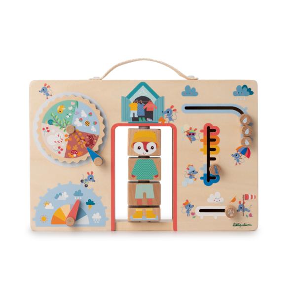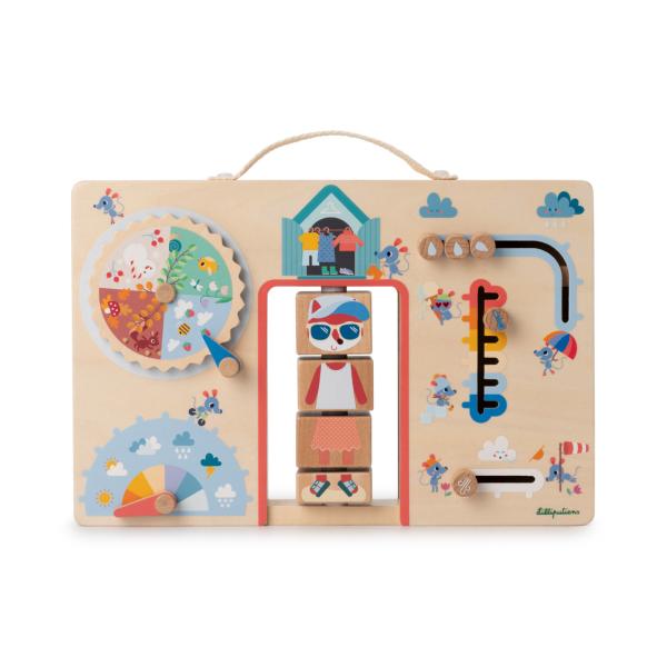 Tento panel je pro rodiče skvělý způsob, jak strávit čas s dítětem a povídat si o změnách počasí a správném oblékání. Díky tomuto hravému panelu si vaše dítě osvojí základy o počasí a naučí se, jak se připravit na jakoukoli situaci!