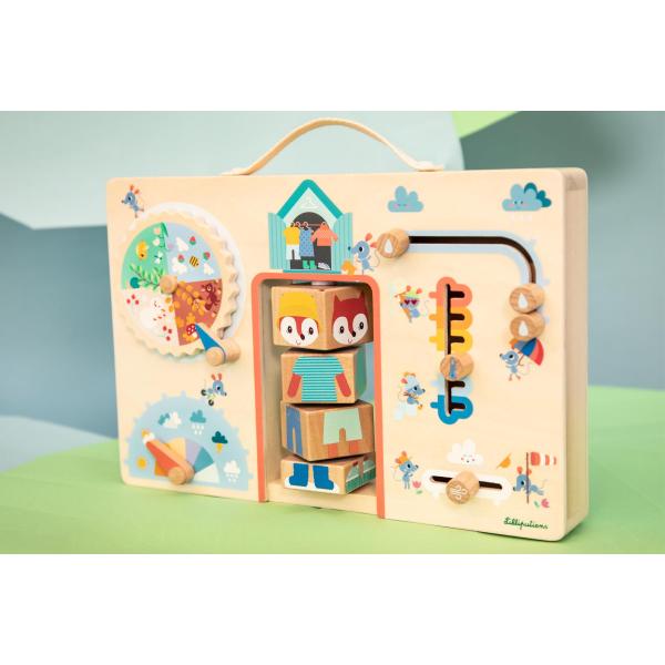 Ve středu panelu je roztomilá liška Alice, která čeká na své nové kamarády, aby jí pomohli vybrat správné oblečení do každého počasí.