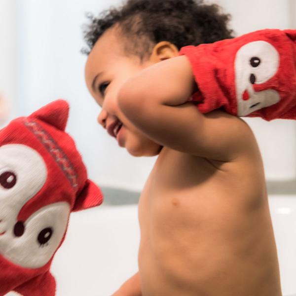 Vytvořte si z koupele zábavnou aktivitu s touto super měkkou sadou rukaviček ve tvaru maminky lišky Alice a její malé dcery. Rukavice se po nasazení na ruce promění v loutky, se kterými můžete hrát malé divadlo a vymýšlet s dětmi příběhy. Umývání se tak stane zábavnější a děti se naučí samostatnosti. Rukavice jsou jemné na dětskou citlivou pokožku a jsou vhodné pro děti od 6 měsíců. Dárek, díky kterému se koupel stane výjimečným okamžikem spolupatřičnosti mezi rodičem a dítětem.