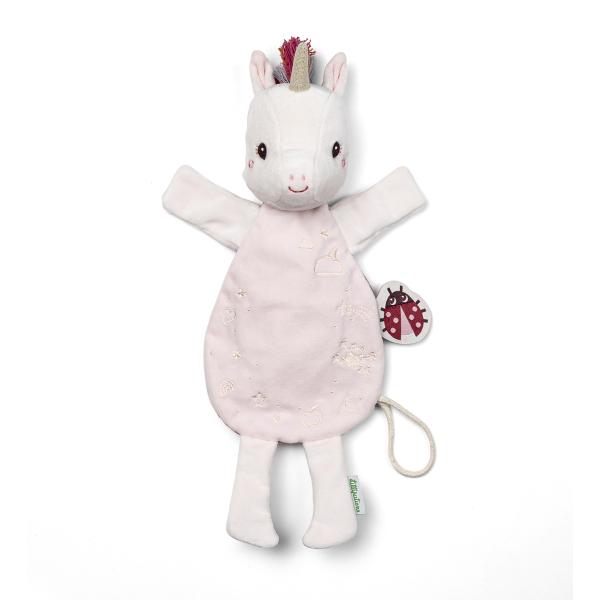 Plyšová maňuška jednorožec Lena je vhodná od narození. Hračka, která ve tmě svítí, dítě uklidňuje a nikdy ji neztratí. Malým bonusem tohoto plyšáka Lilliputiens je spona na dudlík – ideální na to, aby se neztratil ani ve dne, ani v noci. Lze prát v pračce na 30 °C na jemný cyklus.