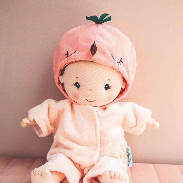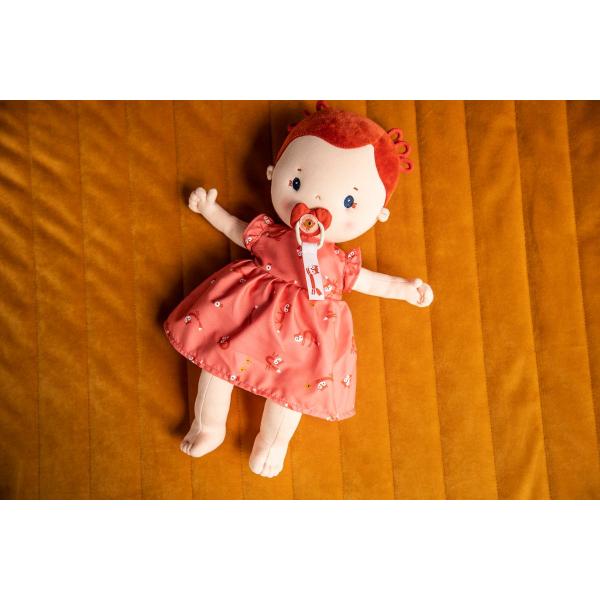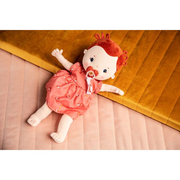 Hračku lze prát v pračce na 30 °C. Hra s panenkou rozvíjí empatii a hru rolí. Materiál: 100% polyester + magnet, plnění 100% recyklovaný polyester (certifikace GRS).