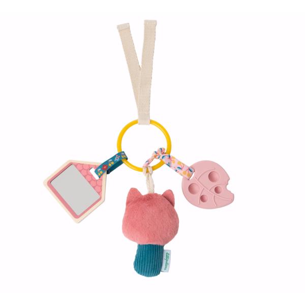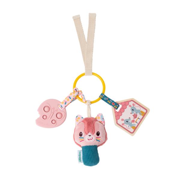 Děti na hračce upoutají různé materiály a barvy. Kočička je vybavena protlačovací aktivitou a zrcadlem. To všechno láká dítě na dotýkání, čímž se přirozeně podporuje rozvoj motoriky a koordinace ruky a oka.