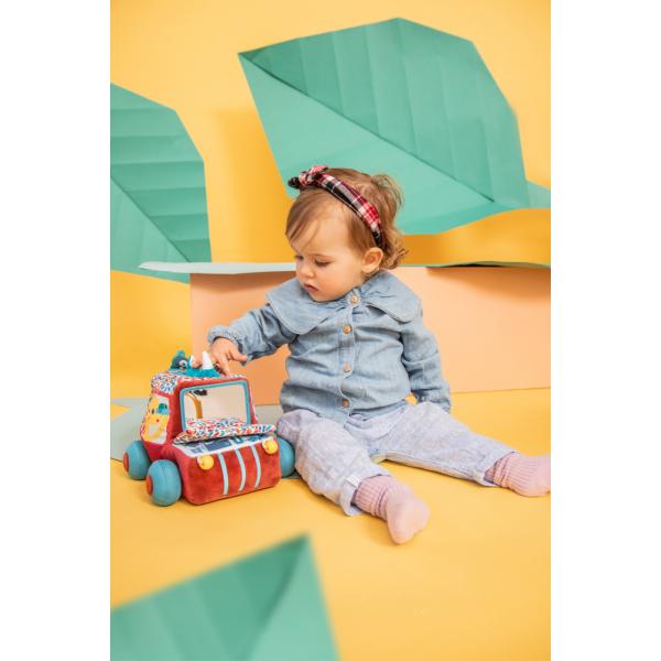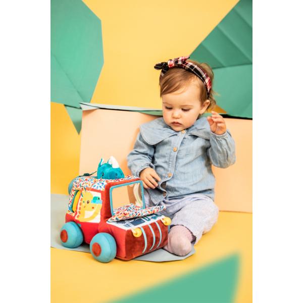 V autíčku se veze pasažér nosorožec Marius, který vykukuje hlavou přes střechu a dohlíží na cestu. Autíčko malým dobrodruhům od 9 měsíců nabízí pestré barvy, rozmanité textury, zrcadlo a mnoho dalších aktivit.