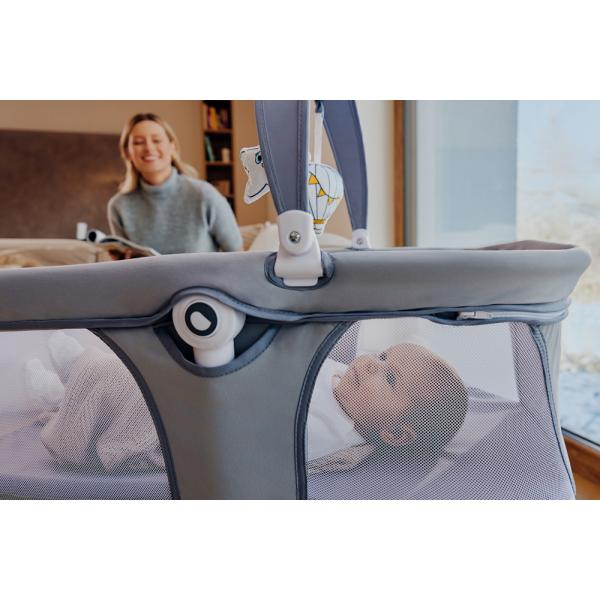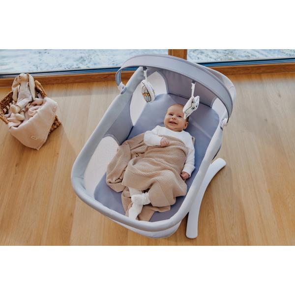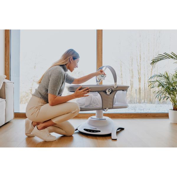 Funkce, které usnadňují život: Kolébka je vybavena mnoha užitečnými funkcemi, které rodičům usnadní život. Noční režim způsobí, že se kolébka začne pomalu zpomalovat, až se úplně zastaví.