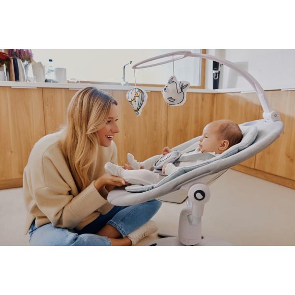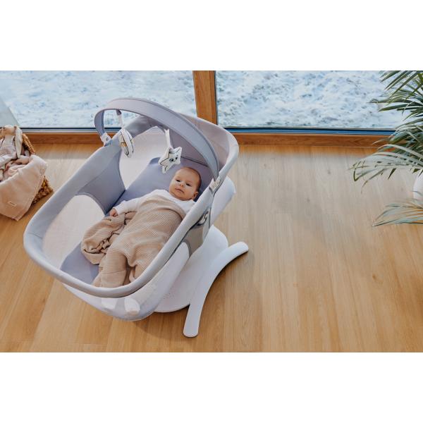 Díky houpavému pohybu s více dráhami zachycuje Bella přirozený rytmus jako v rodičovském náručí, takže kolébka je pro dítě známým a příjemným místem. Výběr z 5 rychlostí houpání přizpůsobí intenzitu houpání preferencím a náladě vašeho dítěte.