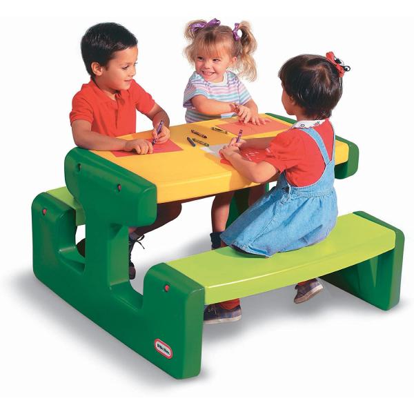 Spojení stolíku s lavičkami zabraňuje převrhnutí laviček, je tak pro děti bezpečné. Může při něm sedět 6 dětí.