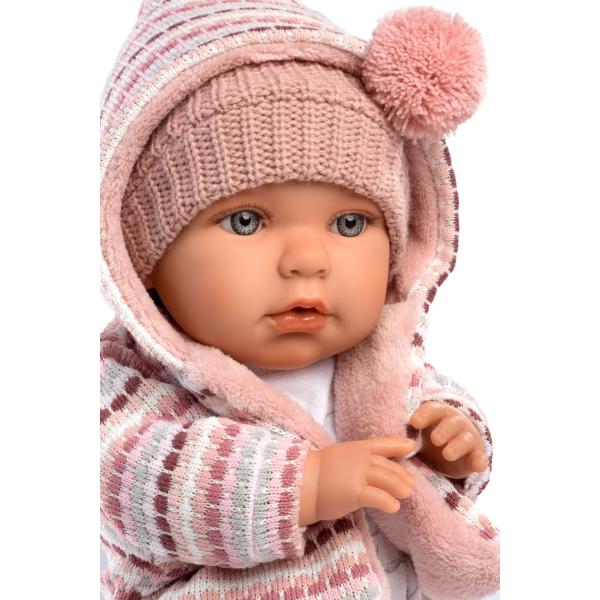 Mluvící a plačící panenka (po vyjmutí pojistky ihned funkční) s měkkým látkovým tělem as vlásky po celé hlavě. Hlava a končetiny jsou vyrobeny z kvalitního měkčeného vinylu. Po vytažení dudlíku z úst začne panenka říkat „máma“, „papá“ a vydávat reálný zvuk plačícího dítěte, který lze utišit opět magnetickým dudlíkem. Velikost panenky 42 cm. Ručně vyrobeno ve Španělsku, baleno v dárkové krabici. Součástí balení je 3 x knoflíková baterie LR44. K panence lze dokoupit další originální oblečení z nabídky Llorens pro panenky velikosti 42 cm Doporučený věk od 3 let.