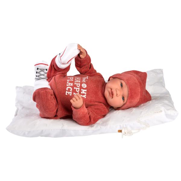 3dílné oblečení s polštářem využitelným jako podložka a muchlacím kapesníčkem s bambulí pro panenku NEW BORN Llorens velikosti 43-44 cm.