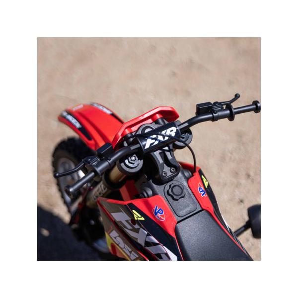 RC model motorky Promoto-MX má skvěle zpracován nejen maketový vzhled stroje s úzkým rámem, figurkou jezdce a oficiálně licencovanou grafikou, ale i technicky zvládnuté bezpečné realistické ovládání motorky s vysokým výkonem střídavého pohonu. To vše díky jedinečnému spojení mechanické a elektronické technologie, vyvinuté speciálně pro Promoto-MX. Dodává se bez baterie a nabíječe.