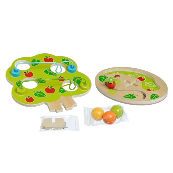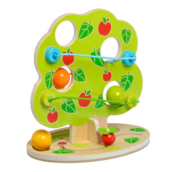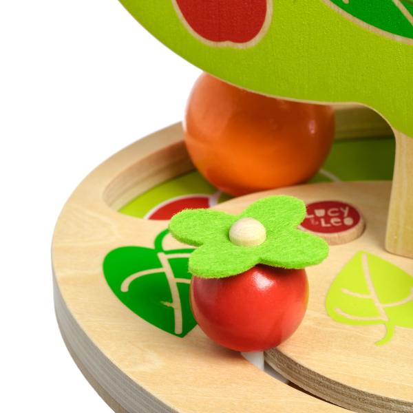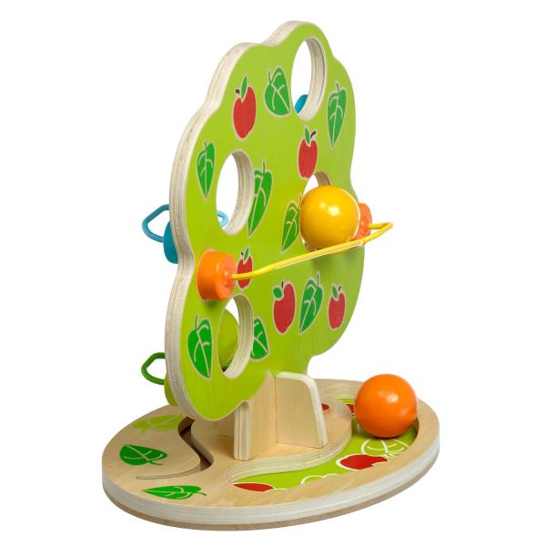 Magický strom je dřevěný tobogan ve tvaru košaté listnatého stromu, která má několik kaskádovitě uložených kolejnic po stranách. Na horní část kolejnice umístěte dřevěnou kouli, která bude procházet různými cestami dolů a vydávat zvuky „cvakání“, jak naráží a kutálí se, dokud se neskutálí pod strom, kde se zastaví. Tato designově atraktivní hračka bude skvělým dárkem pro aktivní dítě, které se rádo hýbe a chrastí věcmi. Se třemi velkými hladkými dřevěnými kuličkami se malým dětem příjemně manipuluje. Hračka podporuje širokou škálu pohybu a využívá prostorového myšlení. Rozměry oválné podstavy: délka 29 cm, šířka 22 cm, výška stromu 31 cm, průměr kuliček 4,5 cm.