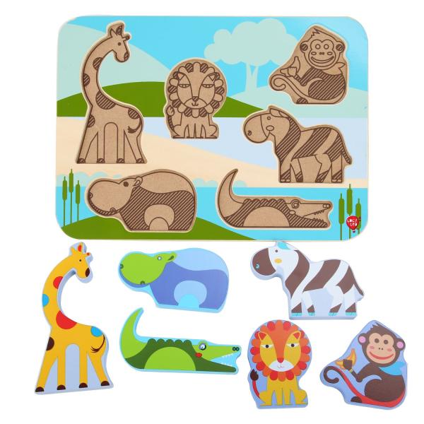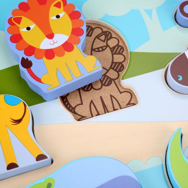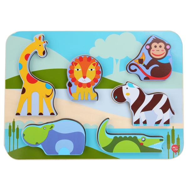 -60%Dřevěné vkládací puzzle pro nejmenší s motivem zvířátek ze safari. Rozvíjí jemnou motoriku a představivost dětí.