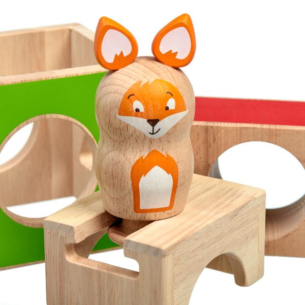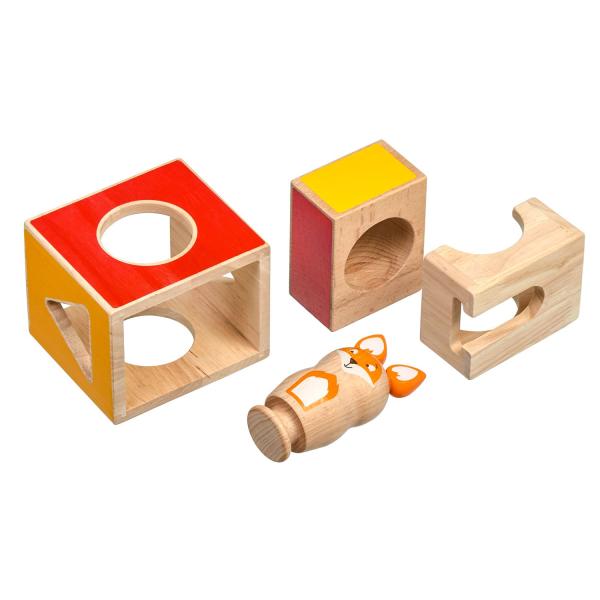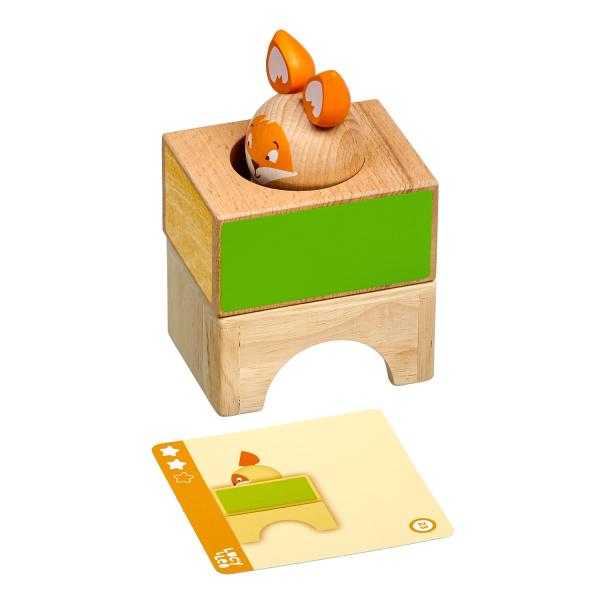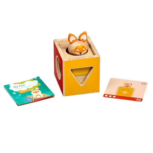 Mazaná liška je dřevěná skládačka, ve které si malá liška velmi ráda hraje na schovávanou, ale potřebuje vaši pomoc, aby se schovala mezi barevnými bloky, do kterých je třeba ji vložit. Skládá se ze 3 dřevěných kostek s otvory různých tvarů, dřevěné barevné figurky lišky a 21 oboustranných karet s úkoly různých úrovní obtížnosti. Cílem hry je uspořádat kostky a lišku podle vyobrazení na kartách. Skládačka je skvělá pro rozvoj logického myšlení, prostorového vidění, jemné motoriky a dětské představivosti. Je také dobrým pomocníkem při trénování barev, tvarů a především slovních druhů – příslovců a předložek. Tato hračka je označován jako Montessori pomůcka Pro děti od 3 let