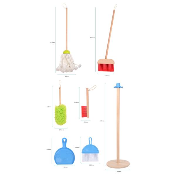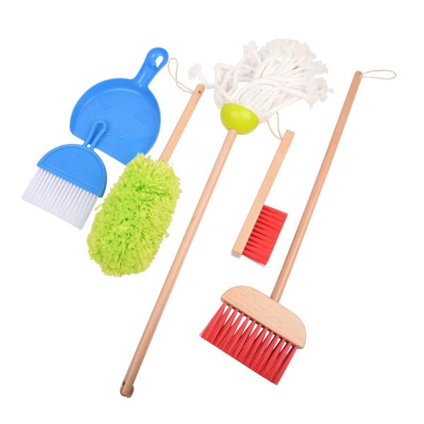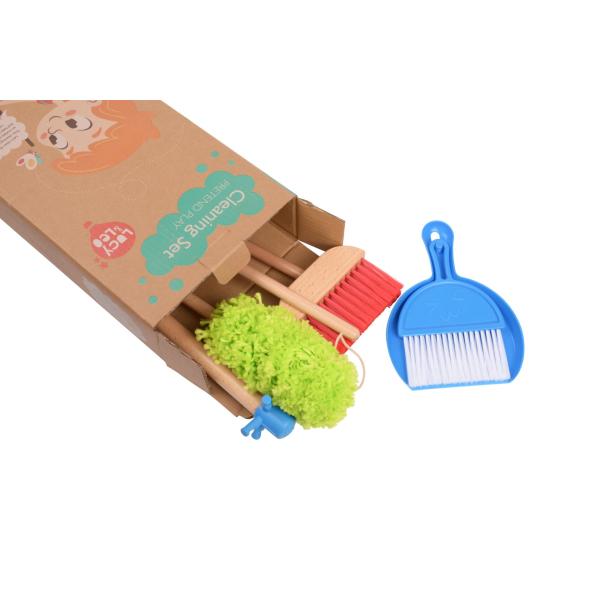 Úklidová sada je dřevěná hračka, která nesmí chybět v žádné domácnosti. Utírání, zametání nebo utírání prachu jde s touto úklidovou sadou úplně snadno a každý chlapec či holčička tak mohou doma začít pomáhat s drobným úklidem.