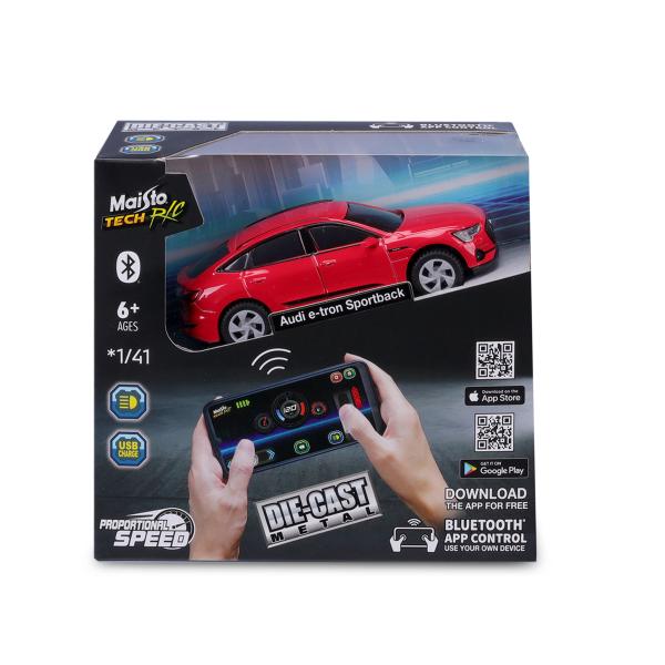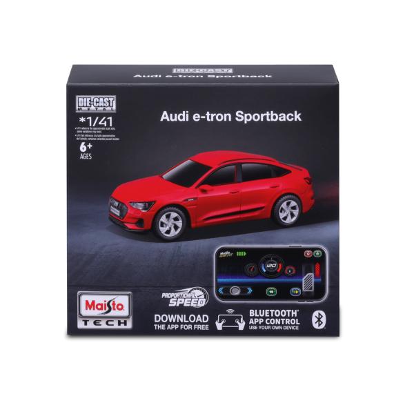 Zažijte budoucnost RC s Maisto mini kovovým RC modelem Audi e-tron Sportback se světly, ovládaným přes Bluetooth. Ovládejte tento zázrak v měřítku 1:41 jako skutečný automobilový nadšenec. Vaše oblíbené modely z litiny jsou nyní ovládány vaším smartphonem – síla je ve vašich rukou!