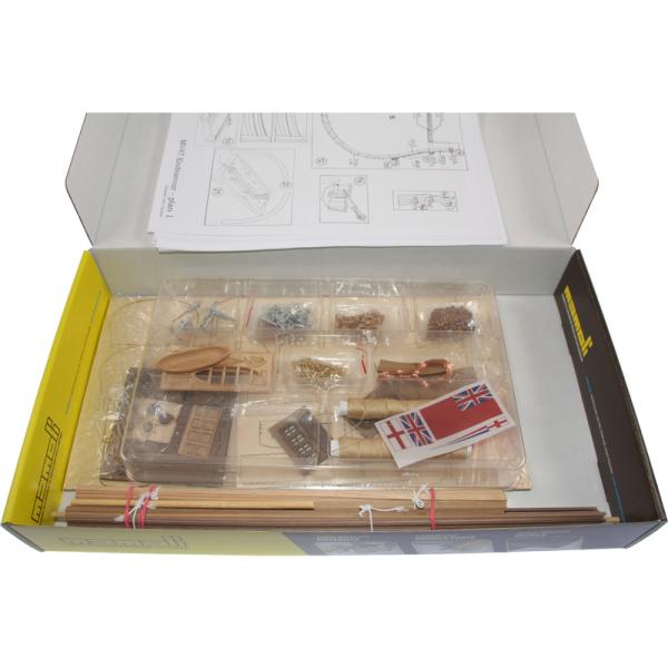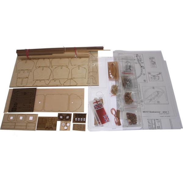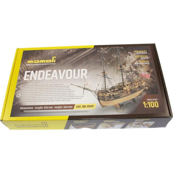Charakteristika:Stavebnice neplovoucího modelu MAMOLI Endeavour v měřítku 1:100 z roku 1769. Loď s kapitánem Cookem v roce 1769 provedla expedici do jižních moří, k pobřeží Austrálie a odvážil se do jižního oceánu. V balení jsou dřevěné díly, lišty a množství kování, příslušenství, plány atd.