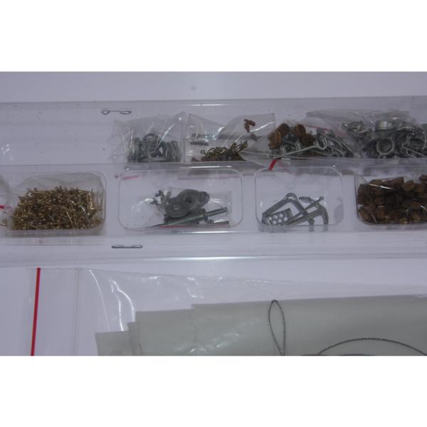 Po otevření víka krabice naleznete dřevěné díly modelu z překližky, sadu lišt, drobné součásti uzavřené v plastovém průhledném blistru, sadu výkresů a manuál.