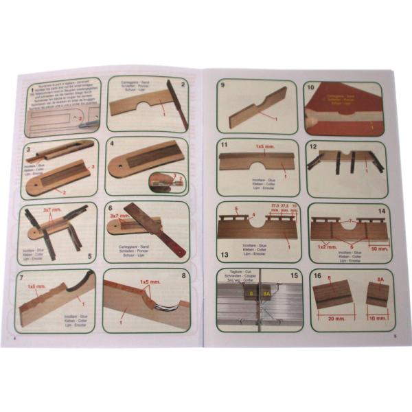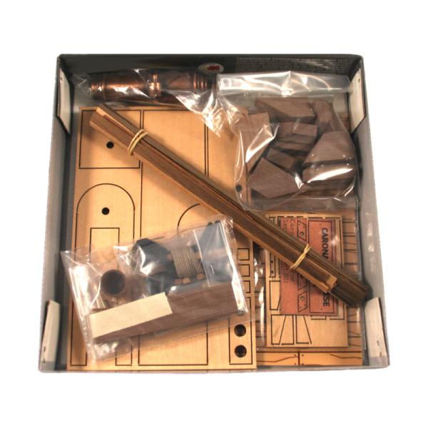 Po otevření víka krabice naleznete dřevěné díly modelu z překližky, lišty, drobné součásti v plastových sáčcích a manuál.