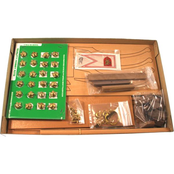 Italský výrobce Mantua Model je již desítky let významným výrobcem stavebnic modelů lodí. Díky svým velkým a bohatě vybaveným stavebnicím historických modelů lodí, jako je Sovereign of the Seas, San Felipe nebo Royal Caroline, stanovil Mantua Model vysoké standardy kvality a jako první zavedl technologii řezání laserem do modelářského průmyslu. Známí italští návrháři navrhli pro Mantua Model široký sortiment známých a klasických modelů lodí, které se staly nepostradatelnou součástí modelářského světa statických maket. Obsah balenia:Balení obsahuje laserem vyřezávané dřevěné díly, kovové odlitky a obrázkový vícejazyčný návod ke stavbě.Odporúčame dokúpiť:Pro stavbu doporučujeme koupit nářadí, lepidlo a barvy.