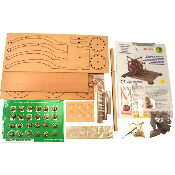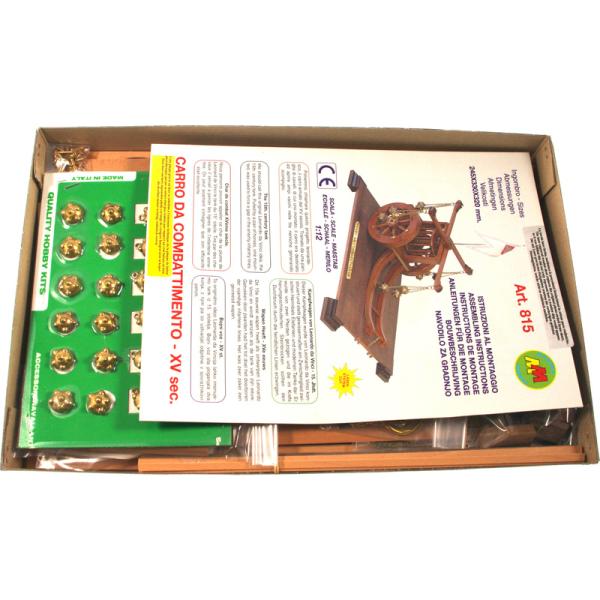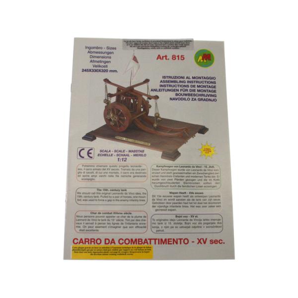 Charakteristika:Stavebnice modelu Římského bojového vozu z 15. století v měřítku 1:12. Tento vůz navrhl Leonardo da Vinci. Byl tažen párem koní. Rotující kovové koule sloužily k proražení nepřátelské linie. Konstrukce se skládá z předem nařezaných dřevěných dílů a kovových litých ozdob.