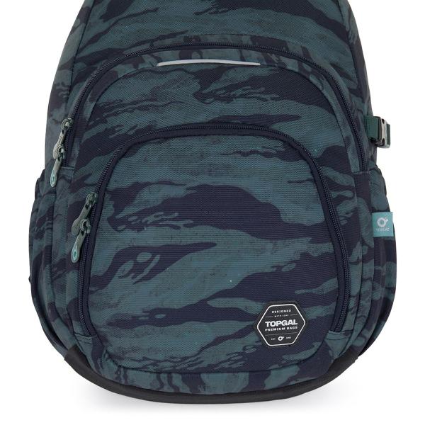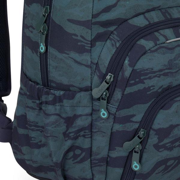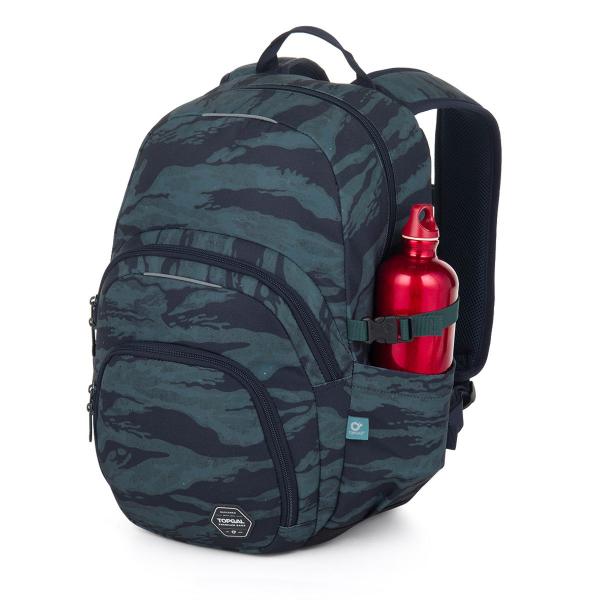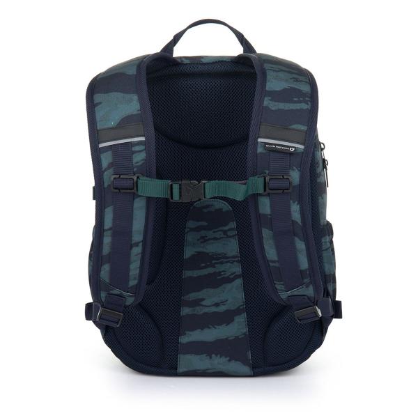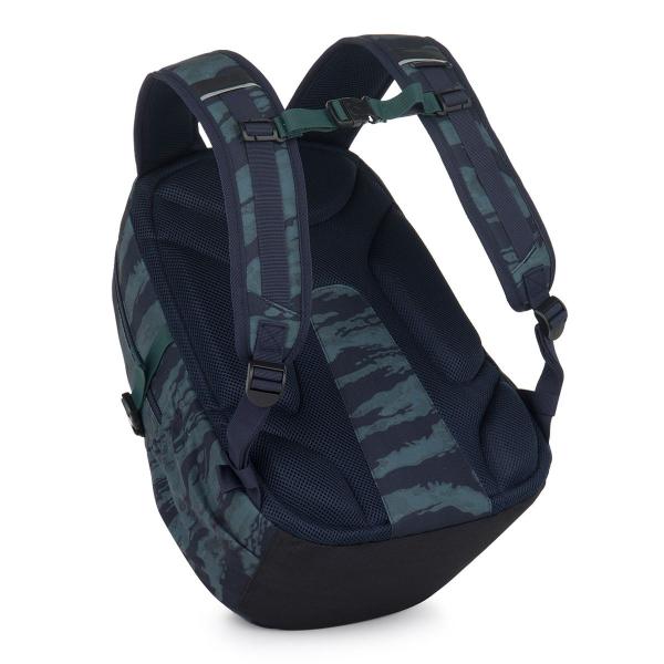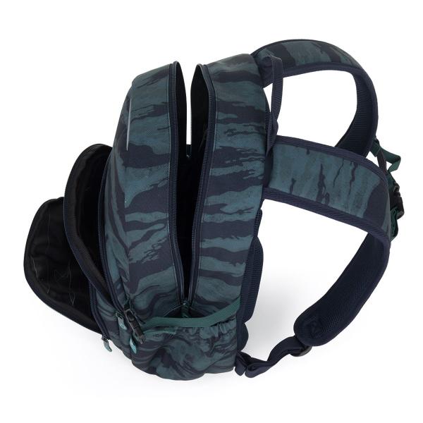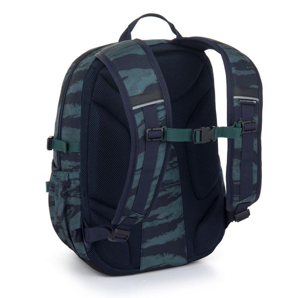 Jednokomorový batoh s maskáčovým vzorem a stylovou nášivkou. Záda batohu jsou vyztužená, ergonomicky tvarovaná a doplněná o lehkou hliníkovou výztuhu, která zajistí pohodlné nošení i při plném zatížení. Uvnitř hlavní komory se nachází polstrovaná kapsa na notebook, praktická klíčenka a síťovaná kapsa na zip pro drobnosti.