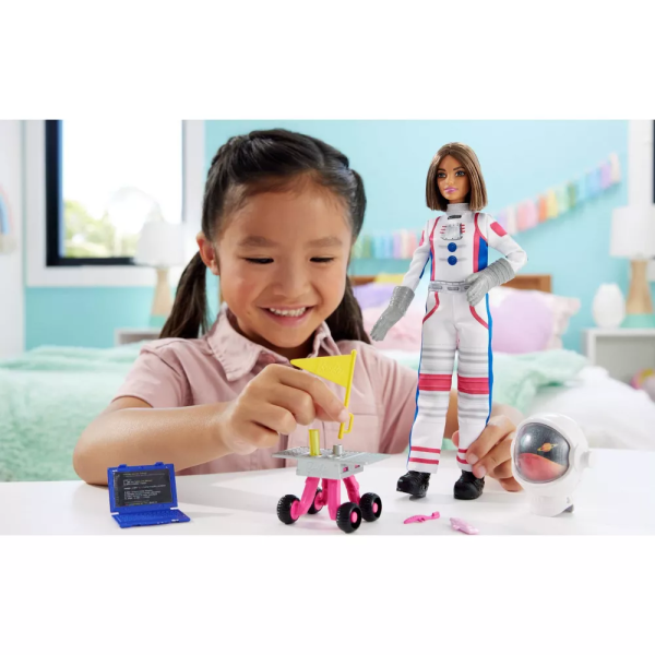 Děti mohou objevovat pracovní svět s panenkou Barbie 65th Anniversary Careers a sadami doplňků, které připomínají některé z jejích nejoblíbenějších rolí fanoušků. Každá hrací sada, stejně jako astronaut, obsahuje módní panenku s 10 doplňky tematicky zaměřenými na jejich práci – některé s interaktivní funkcí. Mladá představivost se rozběhne s roverem a jednoduchým zatlačením, aby se výzkum rozběhl, nebo otočte tvář helmy, abyste zachytili hvězdy. Další příslušenství přidává k zábavě při hraní rolí s kousky, které zahrnují laptop, vesmírné občerstvení a vlajku – Barbie tu byla. Odnímatelný skafandr brunetky astronautky má skvělé detaily, vesmírné rukavice a velké měsíční boty – ideální na procházku vesmírem.