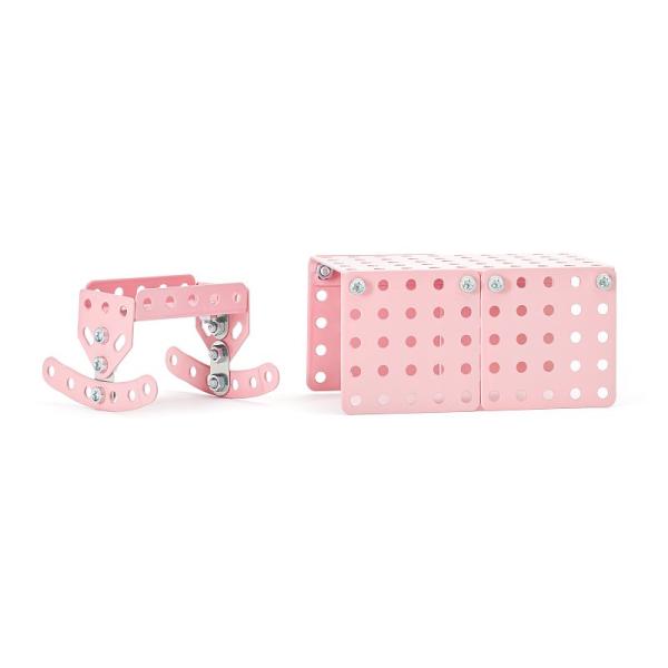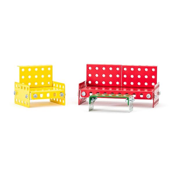 Vstupte do světa kreativity a zábavy se stavebnicí kovového nábytku do domečku pro panenky od společnosti Merkúr. Tato jedinečná sada je ideálním nástrojem pro rozvoj technických dovedností a představivosti dětí. Díky kovovým dílům si malí stavitelé mohou postavit vlastní nábytek do domečku pro panenky a rozmístit si ho podle svých představ. Stavebnice obsahuje kvalitní kovové díly, které se snadno spojují šrouby, což podporuje rozvoj jemné motoriky, logického myšlení a soustředění. Děti se naučí sestavovat jednotlivé díly tak, aby vytvořily jednotlivé kusy nábytku do domečku, který pak mohou využít při hře se svými panenkami. Po sestavení získáte: 2 x postel, 1 x pohovku, 1 x komodu, 1 x křeslo, 1 x konferenční stolek, 1 x jídelní stůl, 2 x židli a 1 x kolébku.