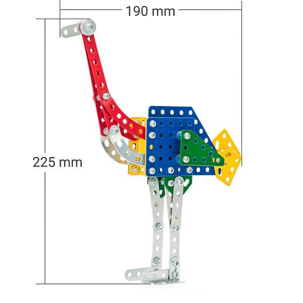 Ponořte se do světa kreativity a zábavy se stavebnicí Zoo od společnosti Merkúr. Tato jedinečná sada je ideálním nástrojem pro rozvoj technických dovedností a představivosti dětí. Díky kovovým dílkům si malí stavitelé mohou postavit zvířátko. Stavebnice obsahuje kvalitní kovové díly, které se snadno spojují šrouby, což podporuje rozvoj jemné motoriky, logického myšlení a soustředění. Sada obsahuje: 106 dílků. Úroveň Merkúr obtížnosti: 3. Balené v krabičce. Rozměry složeného pštrosa: 22,5 x 4,5 x 19 cm. Rozměry balení: 18 x 13 x 2,5 cm. Věk: 5+