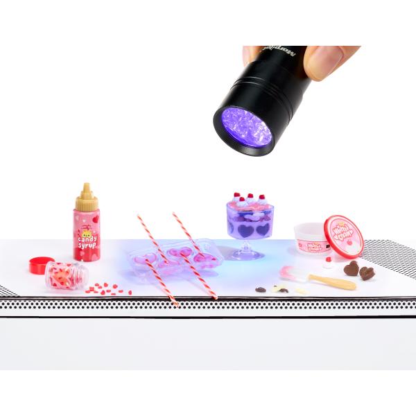 Mini hračky…VELKÁ překvapení! Udělej to! Naservíruj to! Rozbal zamilované sladké jídlo nebo šperk ve formě mini replik. Je tak miniaturní, ale i přesto s neuvěřitelně realistickými detaily! Jídlo nebo nápoj připravíš z ingrediencí ve tvém balíčku, pak ho necháš alespoň 5 minut na přímém slunci vytvrdnout a můžeš servírovat! V této sérii najdeš srdíčkové lízátka, překvapení v srdci, čokoládový dezert s třešněmi a ultra vzácný prsten. Obsah balení:
