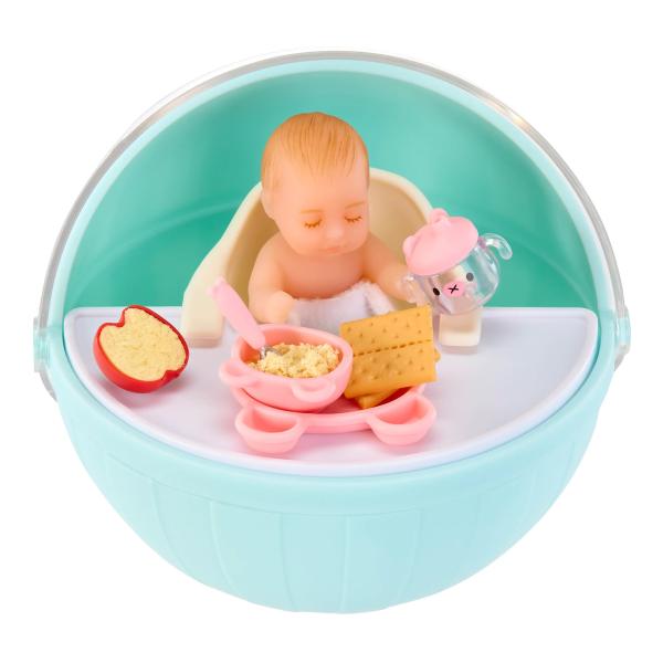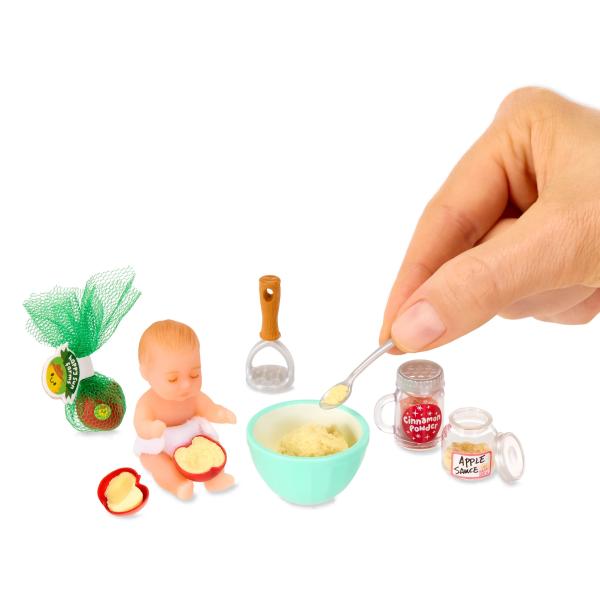 Každá překvapivá kapsle je plná realistických „ingrediencí“ na dětskou výživu a příslušenství na krmení. V každém balení dokonce objevíte roztomilé, superrealistické mini miminko, o které se můžete starat! V celé sérii najdete 8 receptů na mini jídla, která můžete sbírat – takže se připravte na spoustu překvapení!
