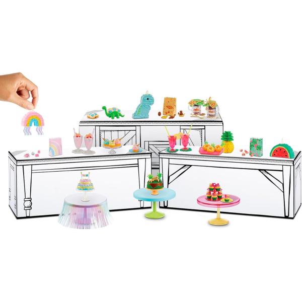 Každá kulička je dodávána s realistickými mini předměty, z nichž si můžete vytvořit své vlastní mini repliky svých oblíbených večírků, které odpovídají jedné ze tří témat večírků: Rainbow, Dino a Tropical.