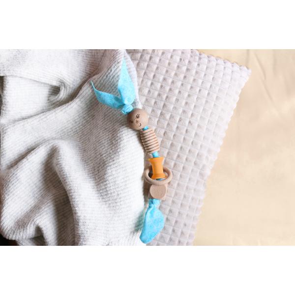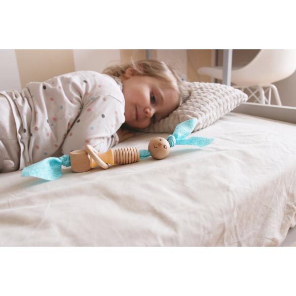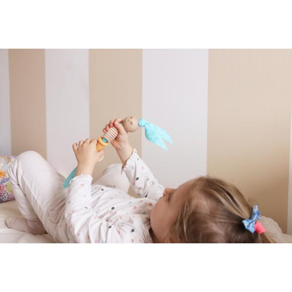 Housenice je složena z 5 kusů přírodního dřeva v různých tvarech a texturách a měkkého textilu.