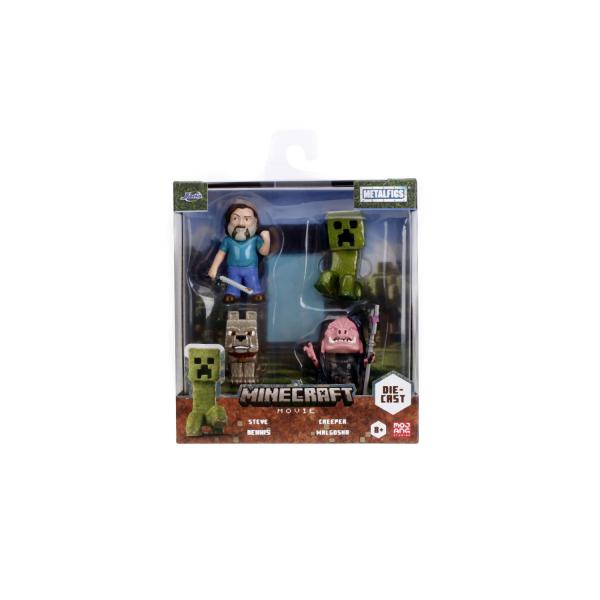 Sada 4 kovových figurek Minecraft Movie o velikosti cca 6,5cm. Postavy: Steve, Vlk, Creeper, Malgosha.
