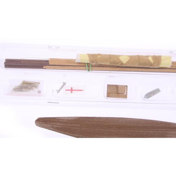 Model nemá přemíru detailů, je jednodušší, proto výrazně méně pracný a časově náročný, díky jednoduššímu stavebnímu postupu by jej měl sestavit průměrně zručný modelář nebo děti v modelářských kroužcích.Obsah balenia:Balení obsahuje hotový polotovar trupu, překližkové díly, dřevěné lišty, blistr s drobnými díly, sadu výkresů a návod.Odporúčame dokúpiť:Pro stavbu doporučujeme koupit nářadí, lepidlo a barvy.