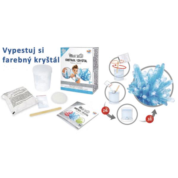 Nejprve připravíte roztok a dalších 10-12 dní poté pozorujete, jak krystal den za dnem roste.Balení obsahuje: