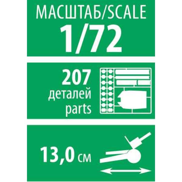 Model vojenský k slepení. Velikost: 1:72; 13 cm. Balení obsahuje: 207 dílků.