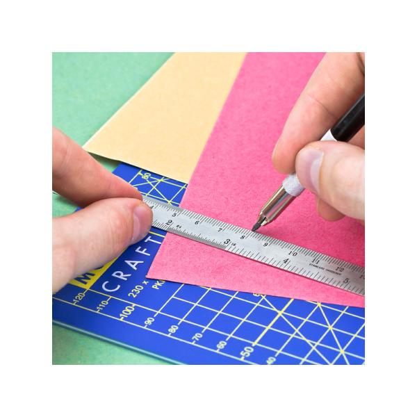 Charakteristika:Modelcraft pravítko 150 mm z nerezové oceli. Snadné čtení údajů, dvě stupnice – metrická a v palcích. Používá se k měření a jako vodící plocha při řezání nožem. Rozměr 180 x 15 mm.