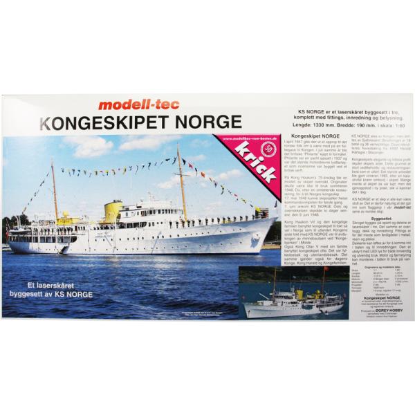 Charakteristika:Stavebnice modelu lodi Kongespiet Norge, v měřítku 1:60, s délkou 1330 mm. Stavba lodi převážně ze dřeva, je vhodná pro zkušené modeláře. Dřevěné díly jsou přesně a čistě řezané laserem. Stavebnice může být jako statický model, nebo ji lze sestavit jako plovoucí model a doplnit o pohon, elektroniku a RC soupravu. (Není obsahem balení).