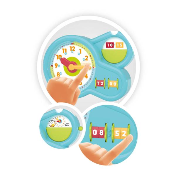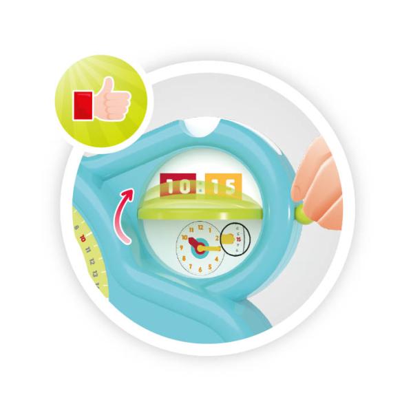 BUKI Moje první hodiny jsou ideální hračkou a učební pomůckou na rychlé seznámení se s časem a jeho správným odčítáním z ciferníku nebo displeje (v digitální podobě). Vhodné na práci rodičů (nebo pedagoga) s dítětem. Čas je možné používat v 12 i 24 hodinovém systému. K dispozici jsou různé varianty ciferníku podle dosaženého stupně výuky.Po zvládnutí učení je možné učební pomůcku přeměnit na plnohodnotné hodiny s budíkem – vložením elektronického hodinového strojku (je součástí hračky).