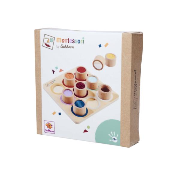 Vnímání je pro dítě důležitým smyslovým vývojem. Hra s různými povrchy a materiály podporuje hmat. Naše Montessori hmatová deska má 9 senzorických válců, ve kterých si dítě může ohmatat povrchy a textury. Montessori hmatová deska…