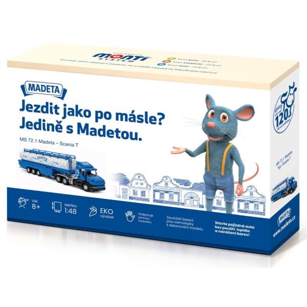 Postavte si model MS 72.1 Madeland Scania T bez použití lepidla a nanášení barev v měřítku 1:48. Jednotlivé dílky jsou tak důmyslně vyrobeny, že s pomocí různých zacvakávacích zámků, úchytů a dalších pružných mechanismů sestavíte model bez jediné kapky lepidla. Vše do sebe jen zacvaknete nebo zasunete. V balení naleznete i samolepky, kterými si složený model můžete polepit.