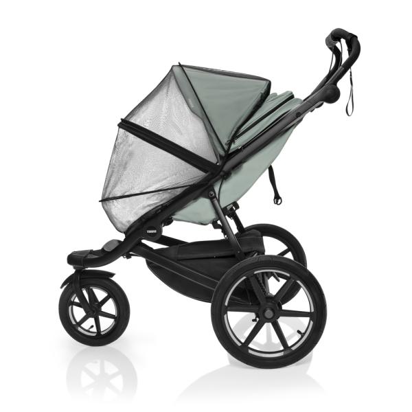 Spolehlivá ochrana před deštěm, větrem a hmyzem – pasuje na sportovní sezení i hlubokou vaničku. Praktické přední okénko na zip umožňuje rychlý přístup k dítěti bez potřeby sundat celou pláštěnku.