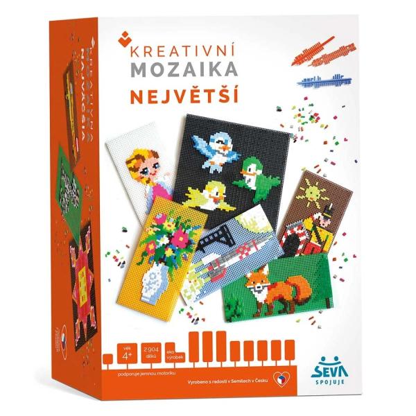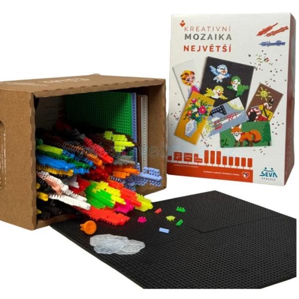 Rozviňte fantazii i jemnou motoriku dětí s největší sadou Kreativní mozaiky od značky SEVA. Tato kreativní stavebnice umožňuje dětem vytvářet barevné obrázky z malých plastových dílků podle vlastní fantazie nebo přiložených předloh. Díky velkému počtu dílků je ideální pro všechny malé tvůrce, kteří se rádi pouštějí do větších projektů.